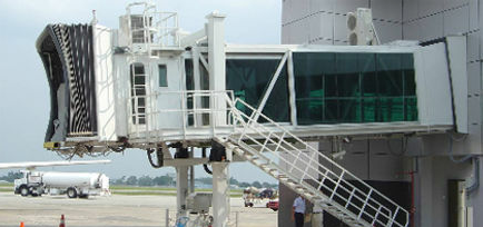 Приводимый в движение подъемной и движущей установкой, телетрап вращается вокруг ротонды и мягко раздвигается до тех пор, пока его водонепроницаемый козырек не окажется точно напротив люка самолета.